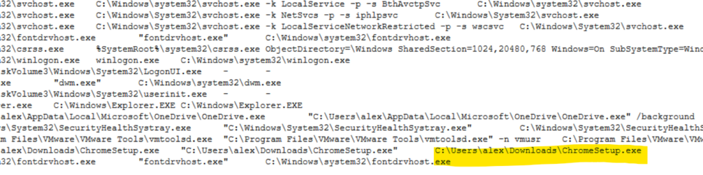 Step 5: The trick to find the malicious process is to pick the one that looks suspicious. In this case, we can tell ChromeSetup.exe is the suspicious process. Why? Because ChromeSetup process cannot run actively. Installers are one-time process and hence should run only once but not continuously.