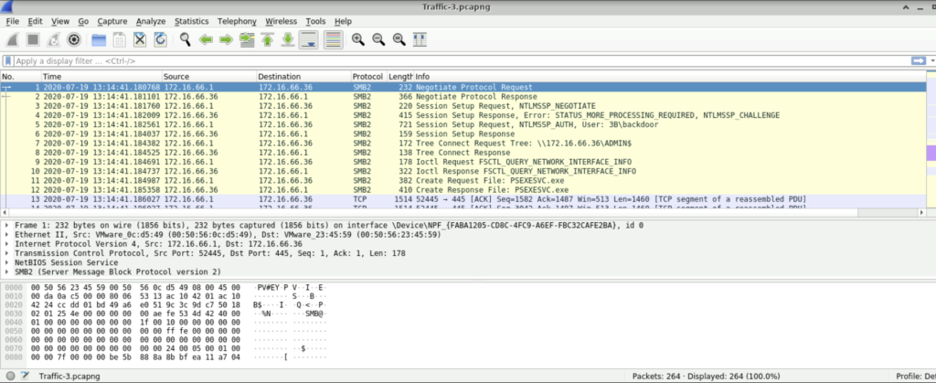 Step 1: If we scroll down, we will find the packet to Create Request File- PSEXESVC.exe. That is the executable file utilized to execute process remotely.