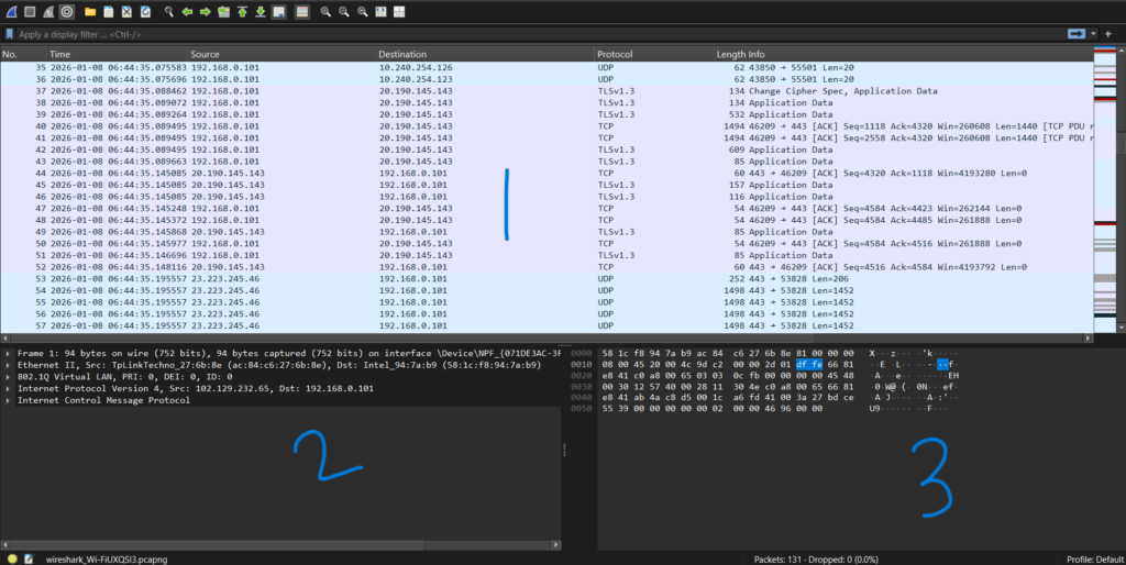 The interface of the tool is divided into multiple windows and panes, each serving a particular purpose in the packet analysis workflow. Understanding these components is essential for efficiently analyzing network traffic.