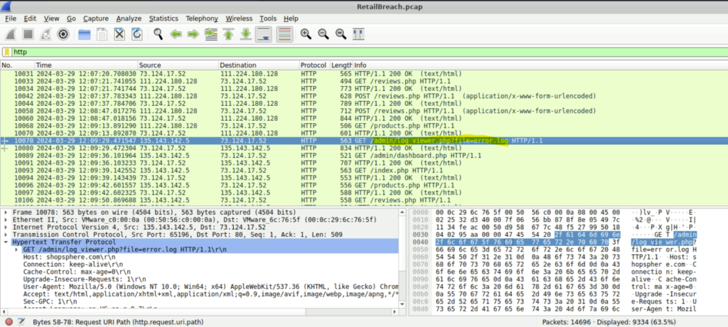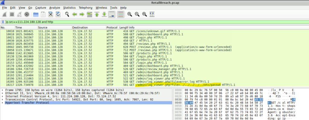 Step 2: We found a packet by the attacker with the specific payload- ‘../../../../../etc/passwd’.